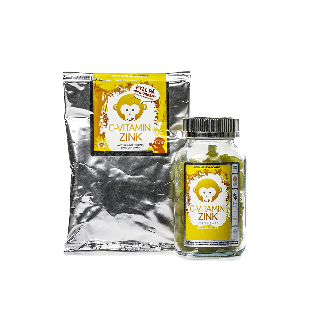 Monkids C-vitamin + Zink Barn Fruktsmak är vegansk, fri från artificiella sötningsmedel, glutenfri och laktosfri. Produkten kan kombineras med alla Monkids övriga produkter.