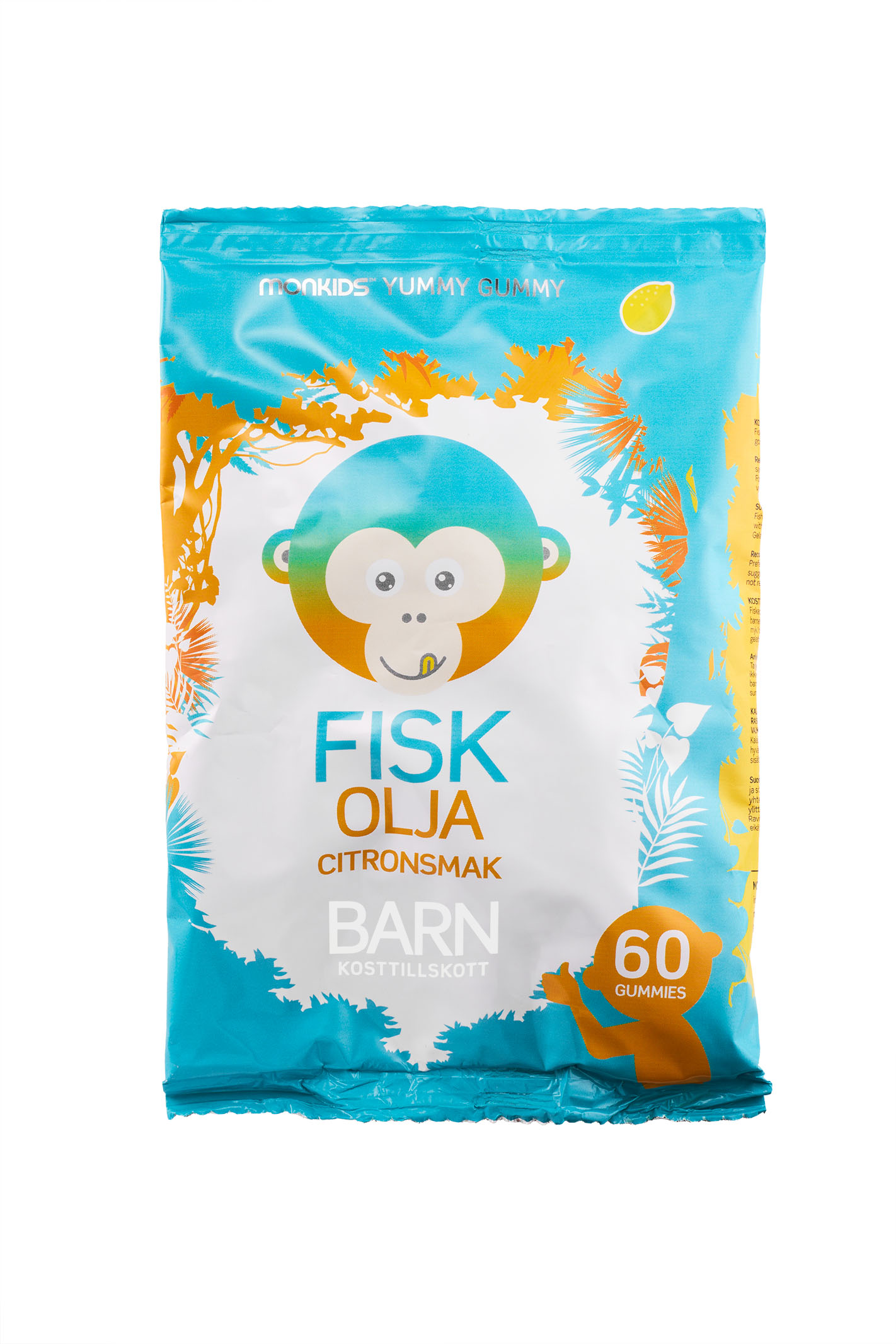 Monkids Fiskolja Barn Citron är en god, mjuk och mycket populär gummy med naturlig citronsmak. Gummyn är till för barn från 3 år. Tuggisen är microinkapslad med syfte att inte ge någon smak av varken fisk eller fiskolja, hur mycket barnet än tuggar.